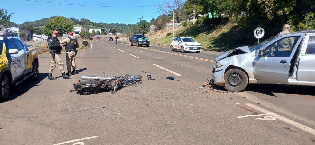 Uma colisão envolvendo um automóvel e uma motocicleta foi registrada nesta terça-feira (29), na rodovia PR-180, nas proximidades da entrada do Bairro Seminário, em Francisco Beltrão.