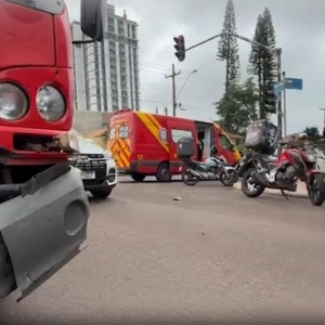 Um motociclista, de 29 anos, ficou ferido na manhã desta quarta-feira (4) após se envolver em um acidente com um caminhão no bairro Neva, em Cascavel, no Oeste do Paraná.