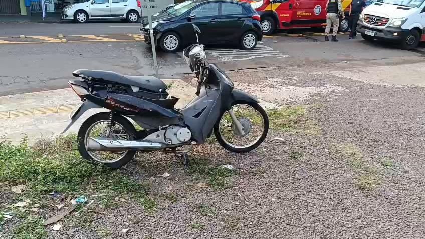 A colisão aconteceu na manhã de quinta-feira (16), no cruzamento das ruas Rui Barbosa e Raimundo Leonardi, nas proximidades do terminal urbano. O acidente envolveu um Hyundai HB20 e uma motocicleta Honda Biz, conduzida por um homem de 44 anos.
