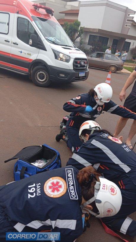 A batida envolveu uma motocicleta e um automóvel. A condutora da moto sofreu ferimentos e recebeu atendimento ainda no local por socorristas do Serviço de Atendimento Móvel de Urgência (Samu). Em seguida, foi encaminhada ao Hospital Municipal de Palotina.