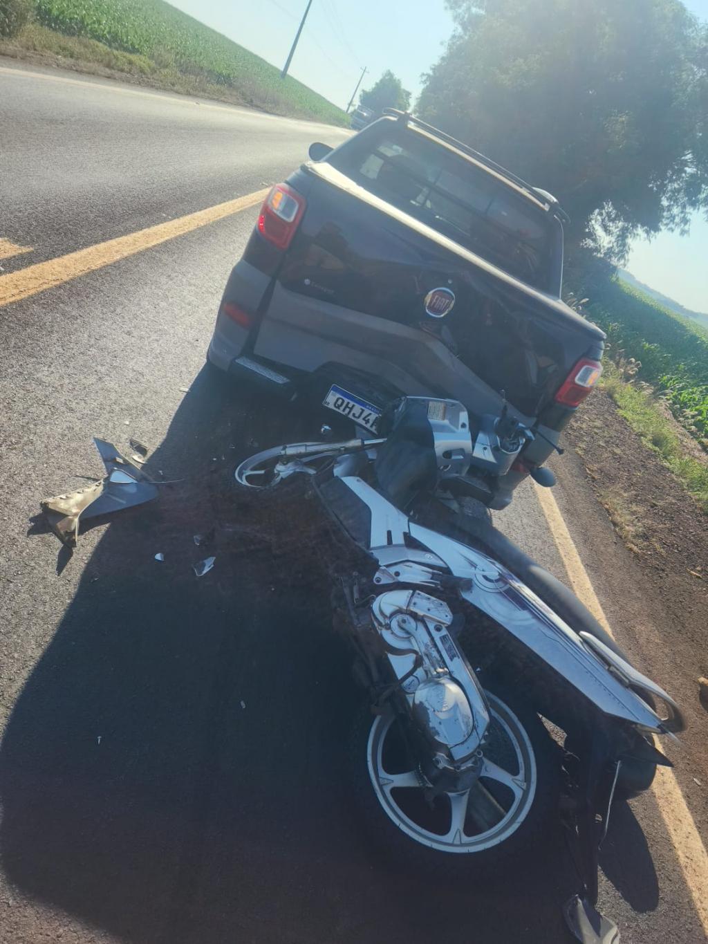 Conforme relato do condutor da Strada, de 45 anos, ele trafegava pela rodovia no sentido Iguiporã a Marechal Cândido Rondon e reduziu a velocidade, parando o veículo em um ponto sinalizado com “Siga e Pare”. Nesse momento, a motocicleta que vinha logo atrás acabou atingindo a traseira da caminhonete.