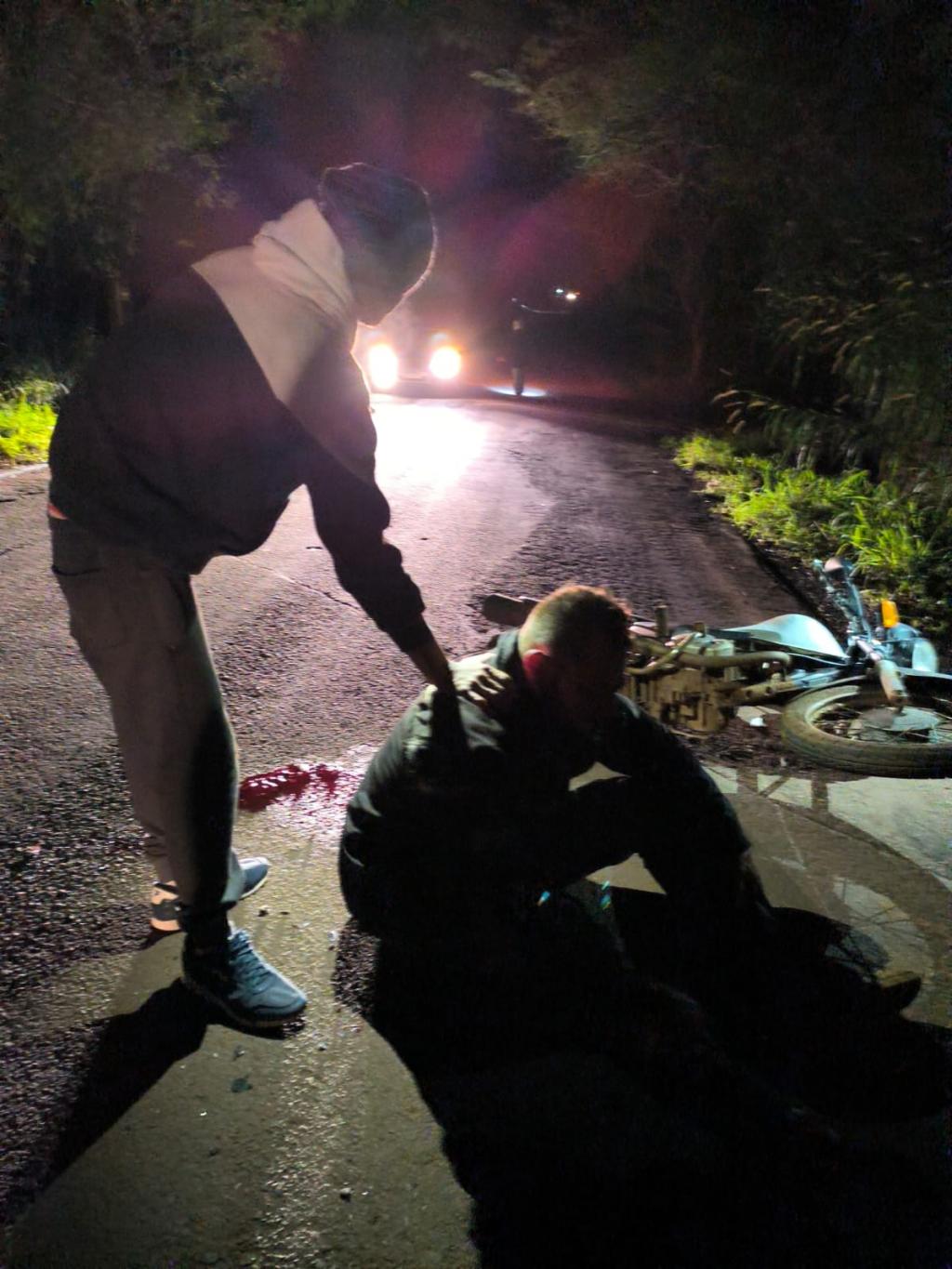 Um motociclista ficou ferido após sofrer uma queda na noite desta segunda-feira, dia 23 de junho, entre os distritos de Vila Nova e Novo Sobradinho, no município de Toledo.