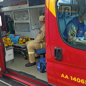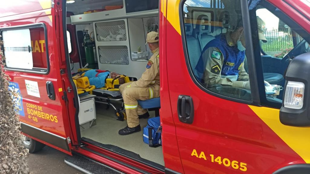 Ocondutor da moto foi socorrido por uma equipe do corpo de bombeiros com escoriações e encaminhado a UPA para atendimento hospitalar.