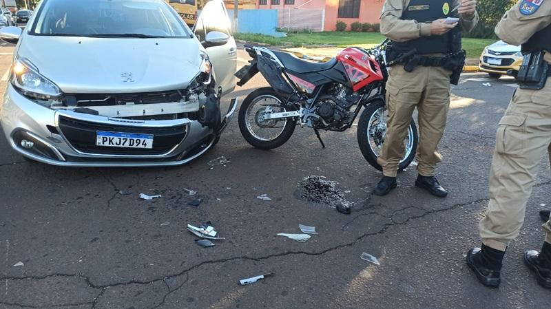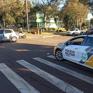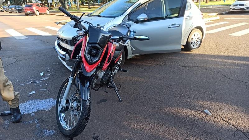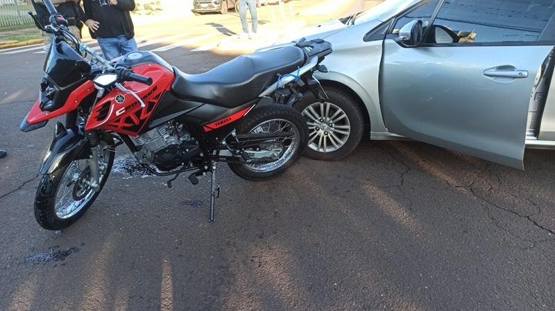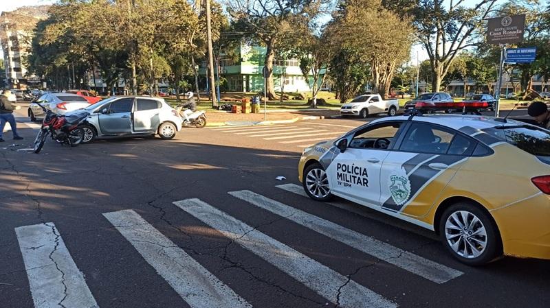 Um acidente de trânsito entre um automóvel e uma motocicleta foi registrado nesta segunda-feira (12), no cruzamento da Rua 15 de Novembro com a Rua Independência, no bairro Jardim La Salle, em Toledo.