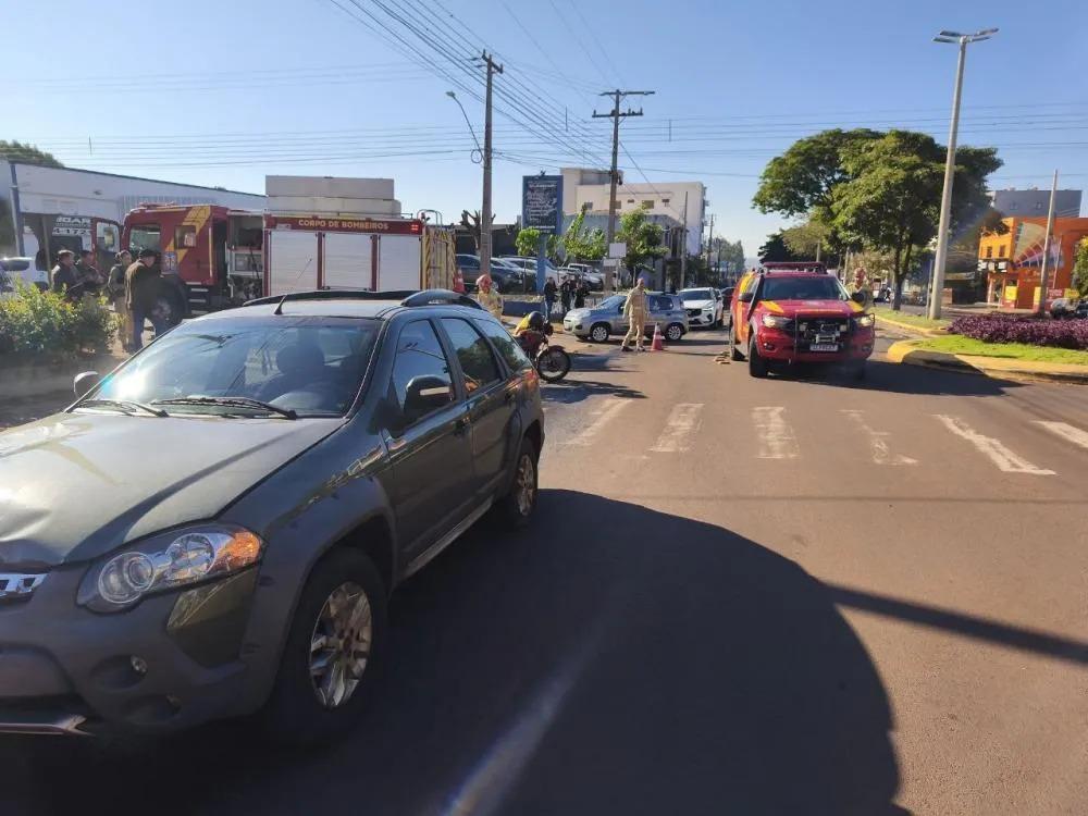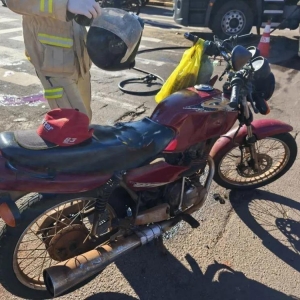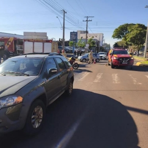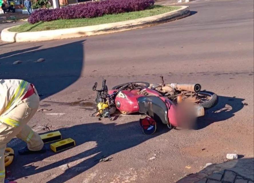Um grave acidente de trânsito foi registrado, na manhã desta terça-feira (10), no centro de Marechal Cândido Rondon. A colisão ocorreu no cruzamento da Avenida Rio Grande do Sul com a Rua 15 de Novembro, e envolveu uma motocicleta Honda CG vermelha, com placa de Marechal, e um automóvel Fiat Palio verde, com placas Brasil.