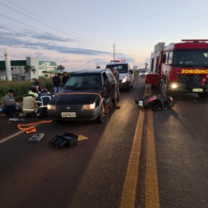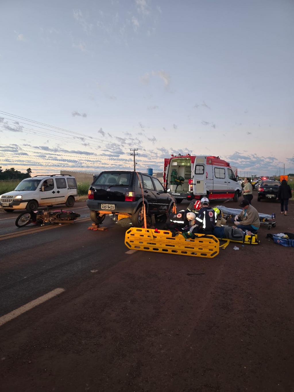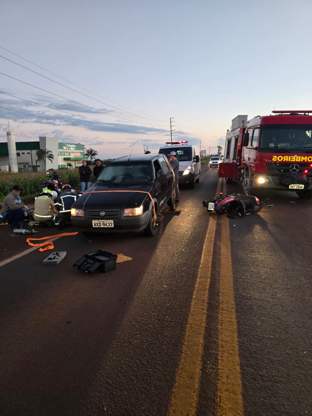 Um acidente registrado na manhã desta quarta-feira (14), por volta das 6h40, mobilizou equipes de resgate na rodovia PR-182 em Palotina, na saída para Toledo, proximidades da Cotriguaçu. A colisão envolveu um carro e uma motocicleta, resultando em ferimentos a uma mulher que pilotava a moto.