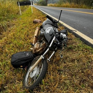 A neblina presente pela rodovia pode ter contribuído para a ocorrência do acidente, dificultando a visão do motociclista, que pode não ter visto o animal.