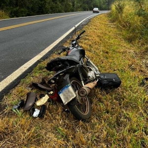 O motociclista, de nome Jonathan e morador de Marechal Rondon, resultou com fratura em uma das pernas e deslocamento no ombro.