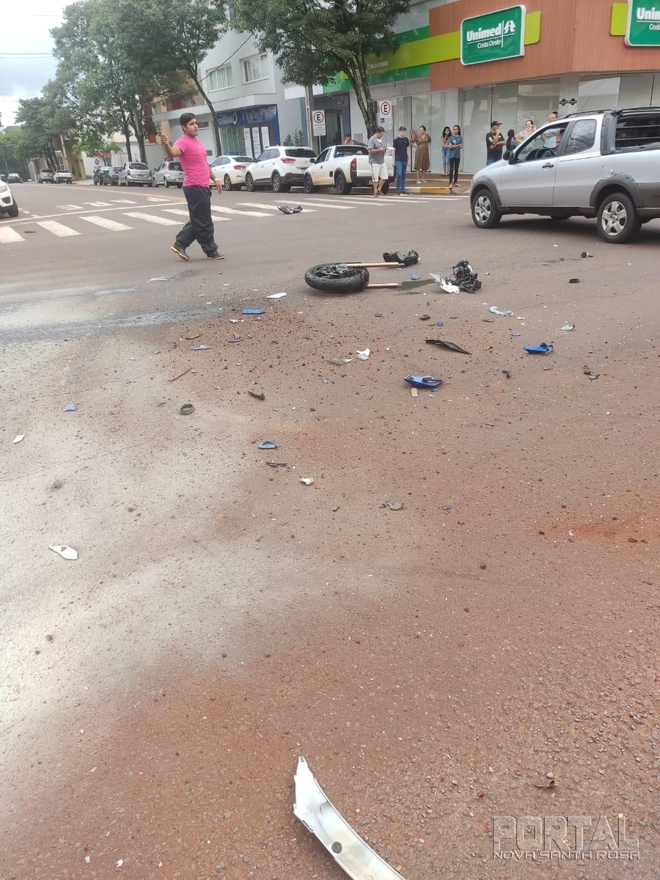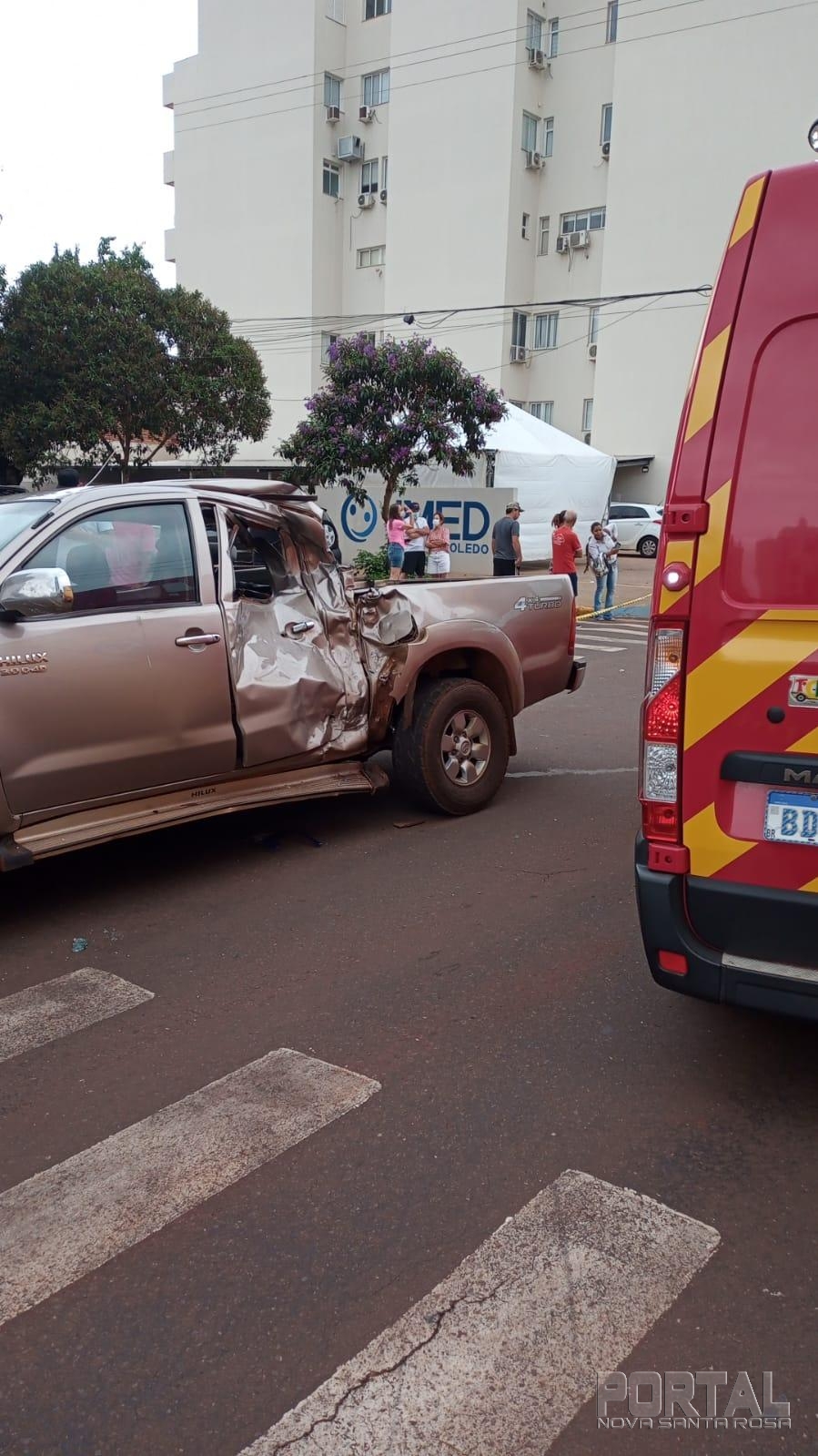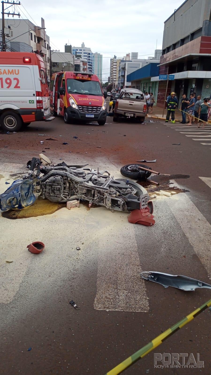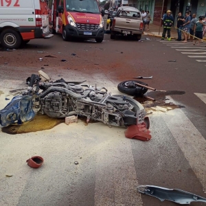Na tarde deste sábado (12) por volta das 15hrs um gravíssimo acidente envolvendo uma motocicleta e uma caminhonete foi registrado na Rua Santos Dumont, região Central de Toledo.