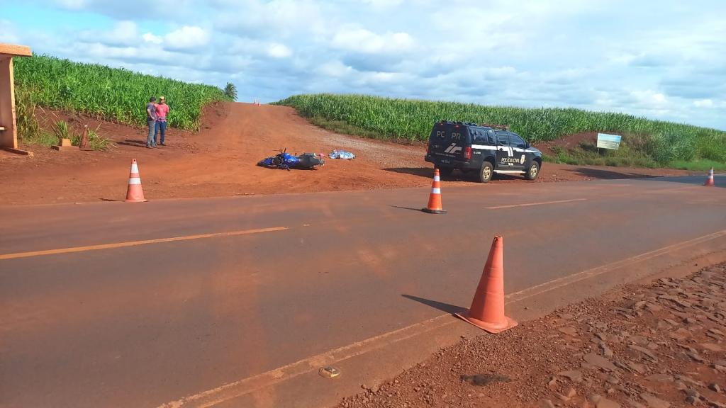 Um grave acidente de trânsito foi registrado na manhã desta sexta-feira (04) na rodovia PR-182, entre Palotina e Francisco Alves, próximo a empresa Três Bom, no entroncamento com uma estrada vicinal, e resultou na morte de um motociclista. A vítima foi identificada como Vinícius Depolo.