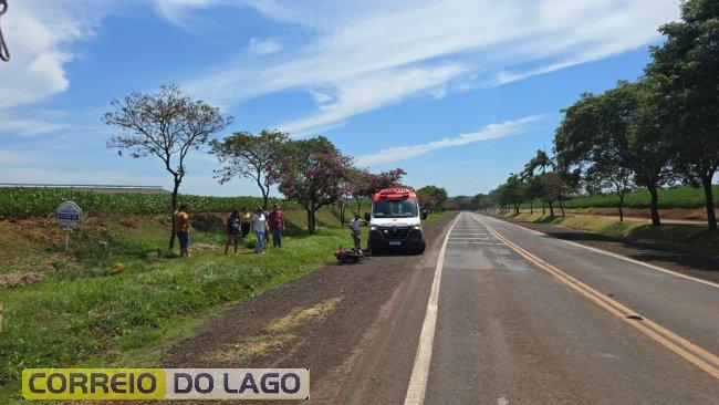 A motocicleta capotou e o condutor caiu em um barranco às margens da rodovia. Equipes do SAMU foram acionadas e prestaram atendimento imediato no local.