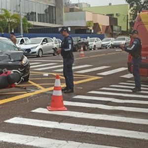 Um acidente de natureza grave, entre carro e moto, foi registrado por volta das 10h50 desta quarta-feira (07), em Toledo.