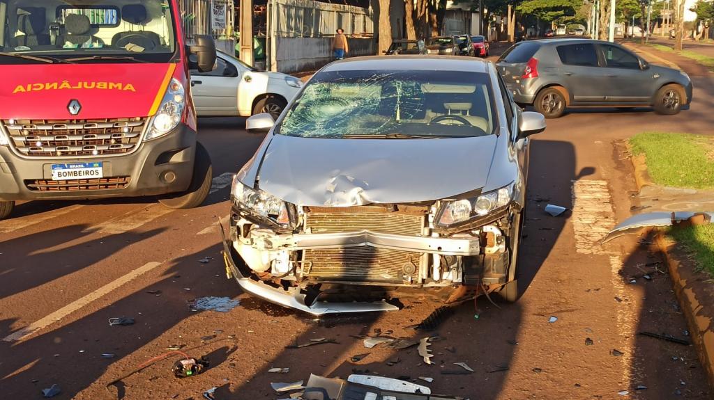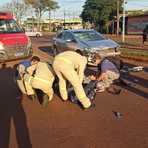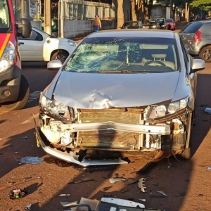 A condutora do Civic trafegava pela avenida José João Muraro e o motociclista seguia pela rua Maria do Carmo e quando o condutor da moto avançou para acessar a avenida, houve a colisão.