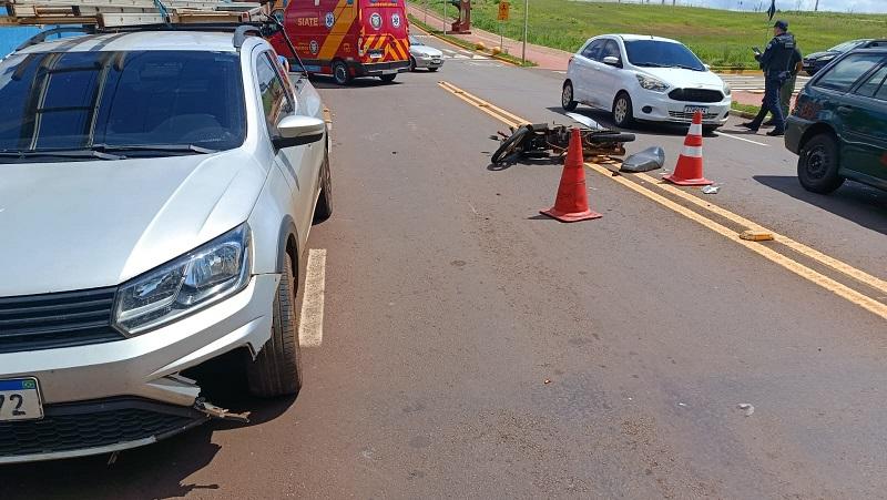 Uma colisão entre uma motocicleta e uma picape deixou um homem ferido na tarde desta terça-feira (4), em Toledo. O acidente ocorreu na Rua Pedro Álvares Cabral, região do Jardim Europa, nas proximidades da ponte sobre o Rio Toledo.