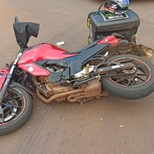 A moto, uma Fazer de 250 cilindradas conduzida por um jovem de 24 anos e uma caminhonete Ford Ranger se envolveram neste acidente.