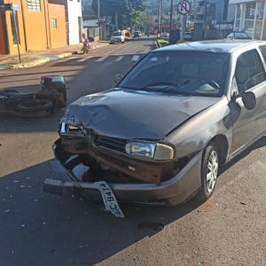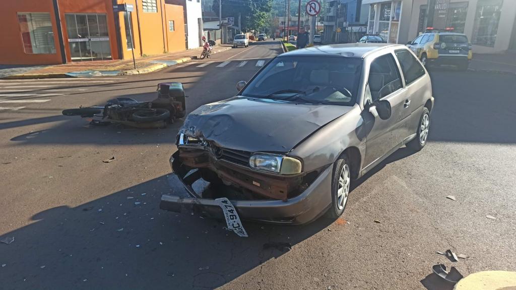 Um acidente entre um carro e uma moto foi registrado por volta das 9h00 desta quarta-feira no cruzamento da rua Piratini com rua Primeiro de Maio na vila Pioneira em Toledo e envolveu uma moto Yamaha YBR 125, conduzida por um homem de 40 anos e um veículo Volkswagen Gol, conduzido por uma mulher.