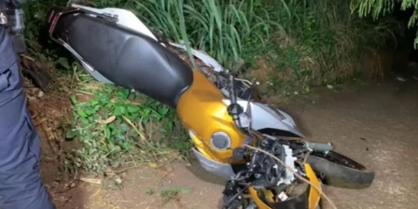Por conta do impacto, a motocicleta por pouco não caiu em uma ribanceira. O piloto e o passageiro foram arremessados para área de mata.