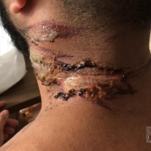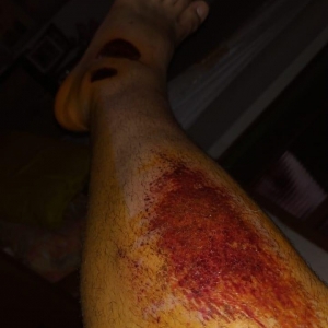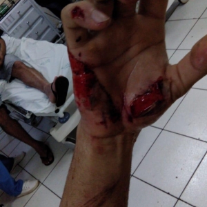O rapaz se desiquilibrou e caiu, os ferimentos foram por todo o corpo, pelas imagens enviadas pelo rapaz, pode se notar a gravidade dos ferimentos que só não foram maiores pois ele colocou a mão na frente do fio para tentar se proteger. Ferimentos graves nas mãos, no pescoço, braços e pernas.
