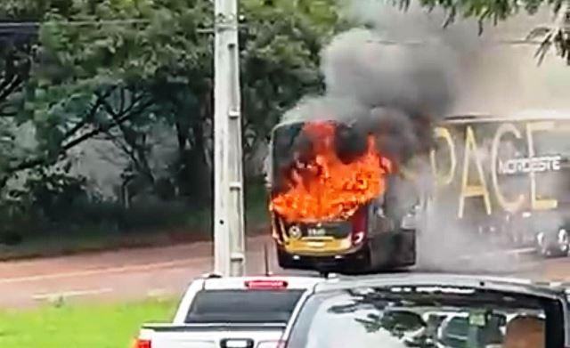 Um ônibus da empresa Expresso Nordeste pegou fogo na manhã desta quarta-feira, 19, em Goioerê, no Paraná. O veículo seguia em direção a Quarto Centenário quando o incidente ocorreu por volta das 11h20. O fogo teve início na parte traseira do ônibus, onde se localiza o motor.