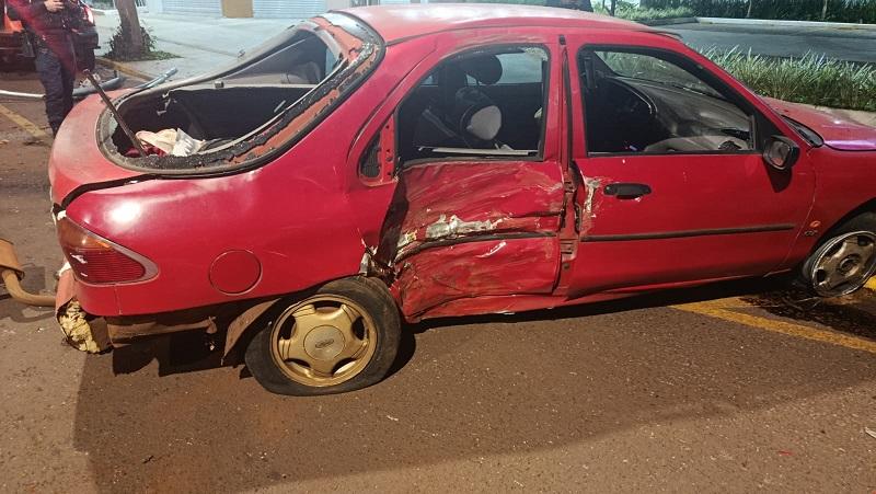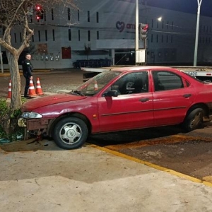 Uma sequência de colisões assustou quem passava pela avenida Maripá, na região central de Toledo, na noite desta terça-feira (22). Um veículo Ford Mondeo com placas da cidade acabou se chocando violentamente contra um poste de iluminação pública e duas árvores no canteiro central da via.