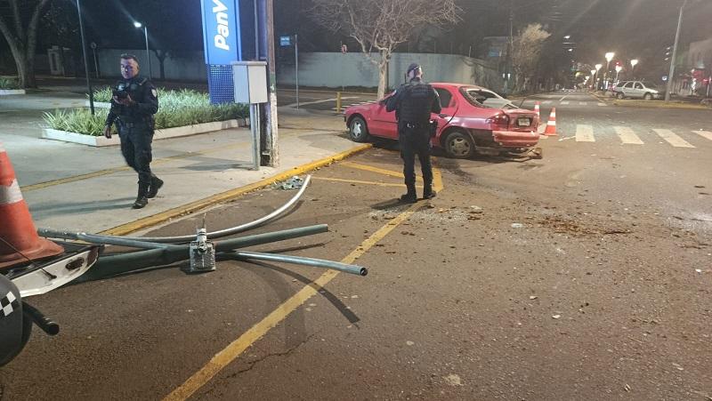 De acordo com informações apuradas no local pela reportagem, o automóvel trafegava pela avenida Maripá e, ao se aproximar do cruzamento com a Rua Dom Pedro II — trecho com semáforo —, o motorista teria perdido o controle da direção. O carro subiu no canteiro central, derrubou um poste de metal, cuja sapata de concreto foi arremessada a cerca de 25 metros do ponto de impacto, e ainda atingiu com a lateral direita uma árvore no mesmo canteiro.