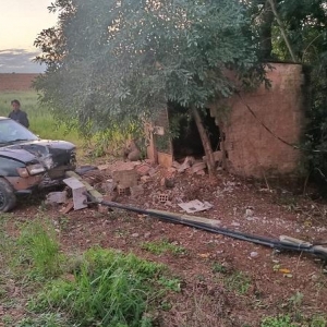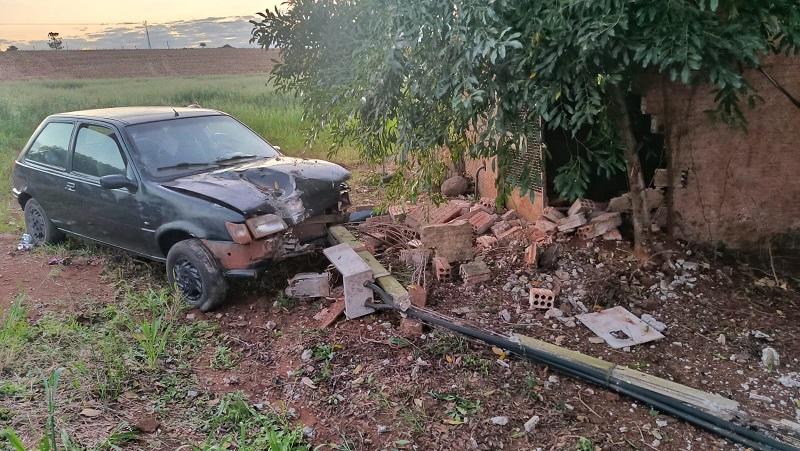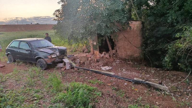 O carro colidiu violentamente contra um poste padrão da Copel, que acabou sendo derrubado. Na sequência, o veículo ainda atingiu uma pequena construção que fica ao lado do poste. Após a batida, o motorista abandonou o local e não foi mais visto.