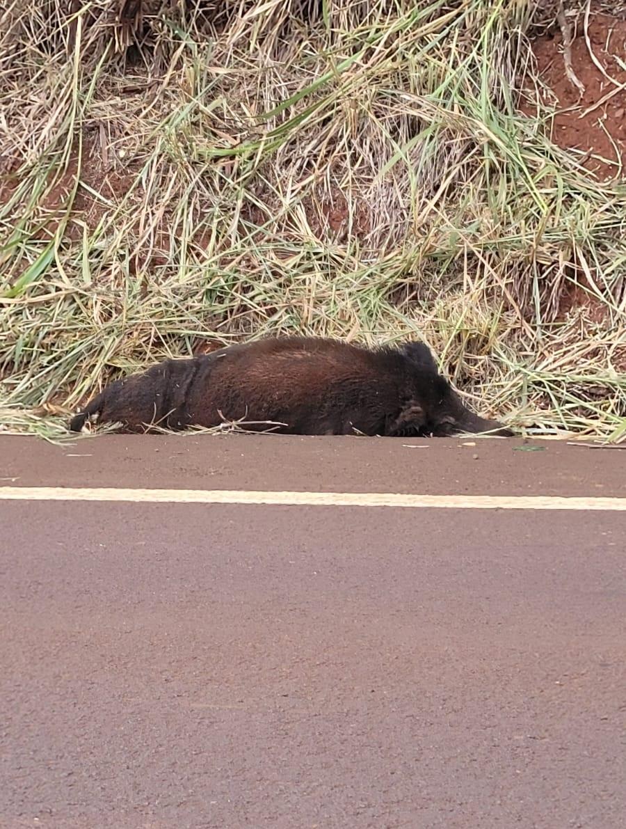Na noite desta sexta-feira, 30 de maio, um motorista que trafegava pela rodovia entre Novo Sarandi e Quatro Pontes acabou atropelando um javali que cruzou a pista de forma repentina.