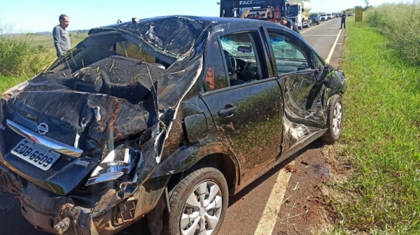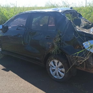 Um motorista capotou o carro após perseguição policial na PR-317, entre Ouro Verde do Oeste (PR) e São José das Palmeiras (PR), na tarde desta terça-feira (16).