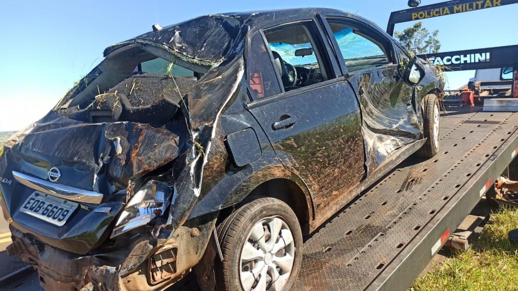 O Corpo de Bombeiros de Toledo (PR) foi mobilizado ao local e um guincho da Polícia Militar foi deslocado para recolher o Nissan. O carro não apresenta sinal de furto/roubo.