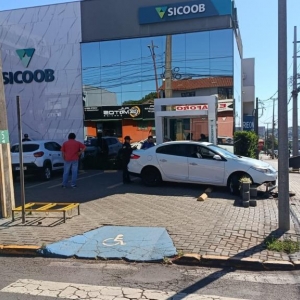 De acordo com informações apuradas pela reportagem no local, a condutora de um Renault Fluence, com placas do Mercosul, seguia pela Rua Primeiro de Maio e ao realizar a conversão à direita para acessar o estacionamento do banco, acabou se confundindo. Segundo a Guarda Municipal, que atendeu a ocorrência, a motorista relatou que, ao tentar pisar no freio, pressionou por engano o acelerador.