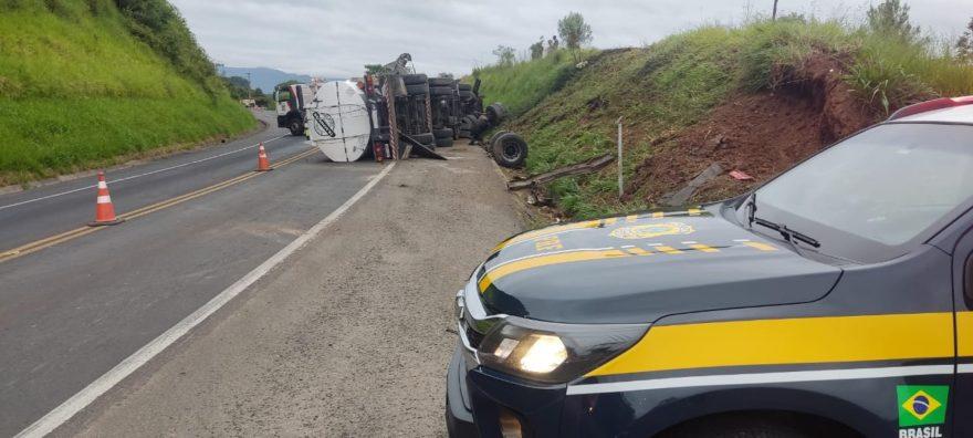 Na manhã desta quarta-feira (19) ocorreu um acidente de trânsito envolvendo um caminhão na BR-277 em Prudentópolis, na altura do KM 295.