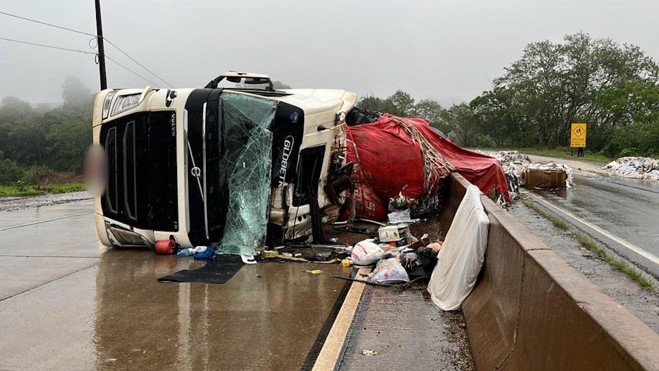 Motorista de carreta morre após tombamento no quilômetro 170 da BR 163, em Lindoeste, na tarde desta quarta-feira (8).