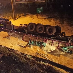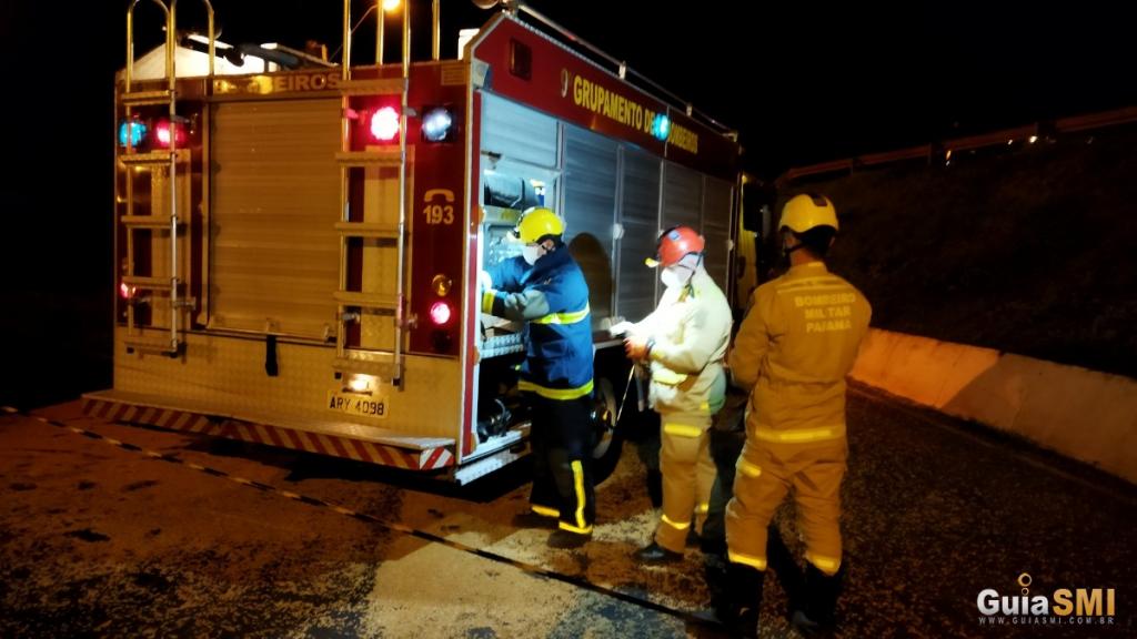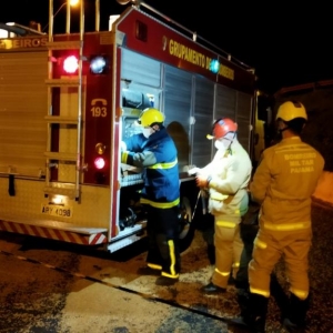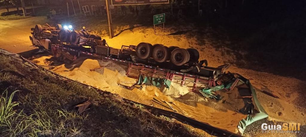 O Caminhão ABTR e o Siate foram até o local onde um caminhão, carregado de milho, que seguia sentido Foz/Medianeira perdeu o controle e acabou saindo da BR 277 e caiu tombado sobre a Av. Iguaçu.