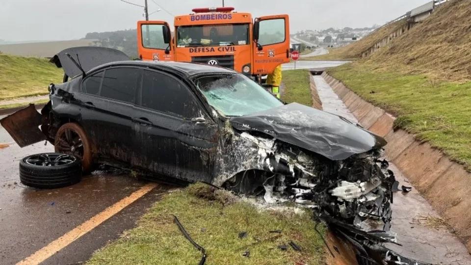 De acordo com o condutor, o automóvel BMW 320i seguia pela rodovia sentido Ubiratã, quando nas proximidades do viaduto da Avenida São Paulo aquaplanou e saiu da pista.