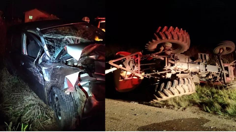 Segundo a PRE (Polícia Rodoviária Estadual), o Fiat Uno seguia na rodovia sentido entroncamento da PR-487, quando se envolveu em batida traseira com o trator que trafegava no mesmo sentido.