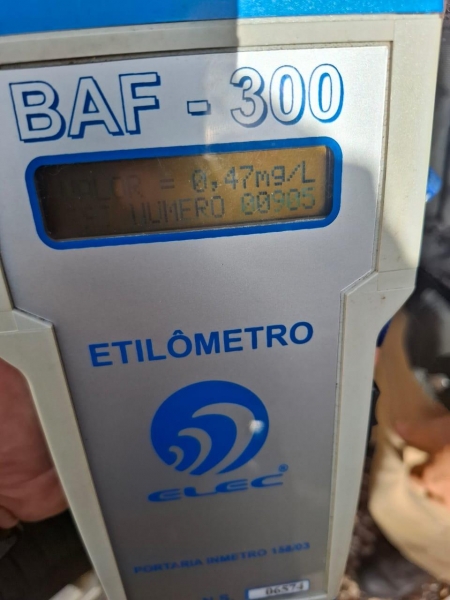 Durante os procedimentos, o condutor realizou o teste do bafômetro, que indicou 0,47 mg/l de álcool por litro de ar expelido, valor acima do limite permitido e que caracteriza crime de trânsito.