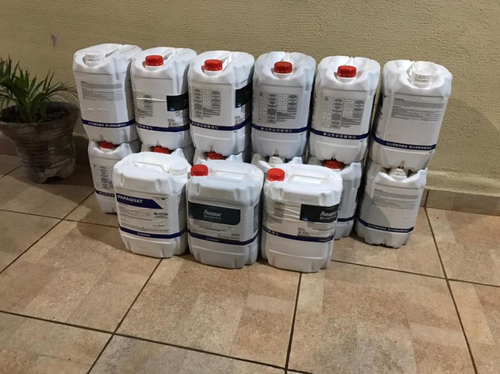 O veículo estava carregado com 15 galões de agrotóxicos contrabandeados.