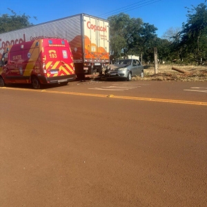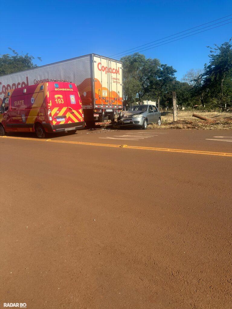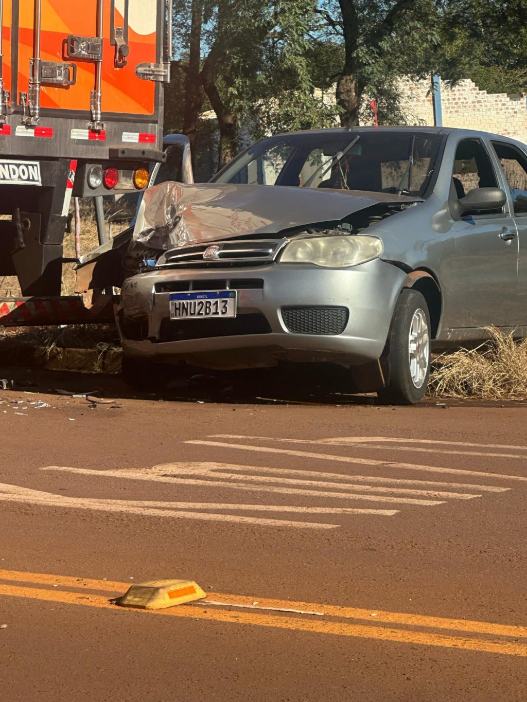 Um Fiat Palio trafegava sentido ao bairro Pinheirinho quando o motorista perdeu o controle da direção e colidiu contra a traseira de uma carreta que estava estacionada.