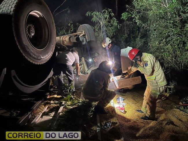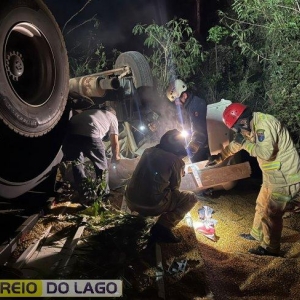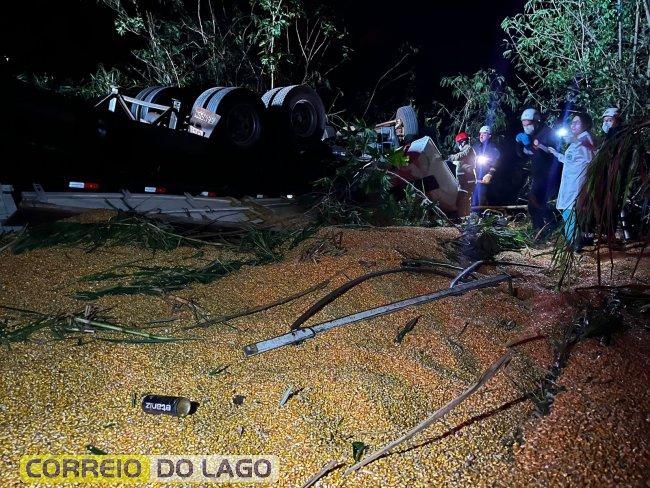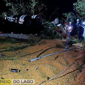 Na noite de quarta-feira (23), equipes do SAMU, Defesa Civil e Bombeiros Militares de Santa Helena foram acionadas para prestar os primeiros atendimentos a um homem que ficou encarcerado após tombar uma carreta carregada com milho na PR-488, nas imediações do Memorial Coluna Prestes, entre o município de Diamante do Oeste e Santa Helena.