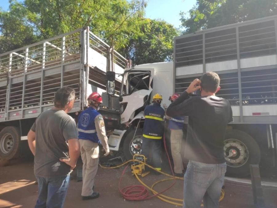 Uma colisão entre dois caminhões foi registrada na manhã da quarta-feira (4), no interior de Toledo. O acidente envolveu dois caminhões Ford/Cargo e aconteceu em uma estrada rural que liga as comunidades de Cerro da Lola e KM 41. O motorista de um dos veículos ficou preso às ferragens.