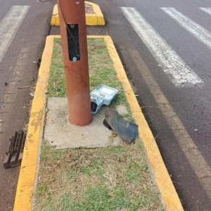 A ocorrência foi atendida pela Guarda Municipal, que encontrou um Volkswagen Gol, de cor vermelha, atravessado na via após colidir contra um poste de iluminação pública localizado no canteiro central. No momento da chegada da equipe da Guarda Municipal, o atendimento à vítima já estava em andamento.