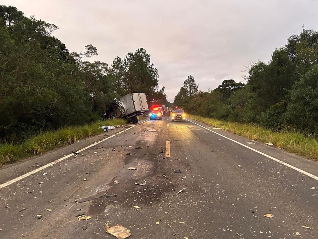 Informações da Polícia Rodoviária Federal dão conta de que os veículos envolvidos eram um caminhão de cor branca, placas de Ponta Grossa, e um caminhão de cor prata, com emplacamento de Irati.