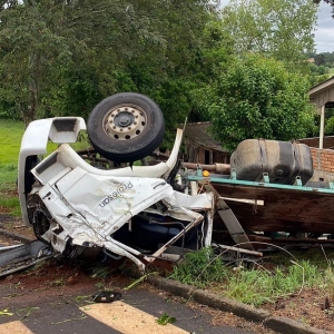 O motorista de um caminhão, que transportava uma carga de gás, morreu nesta manhã de quinta-feira (07) em um acidente de trânsito na PR 562.