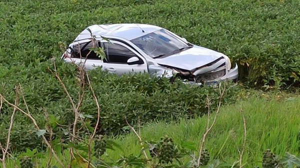 O veículo capotou e parou mais de 100 metros da pista. O automóvel ficou em uma plantação de soja.