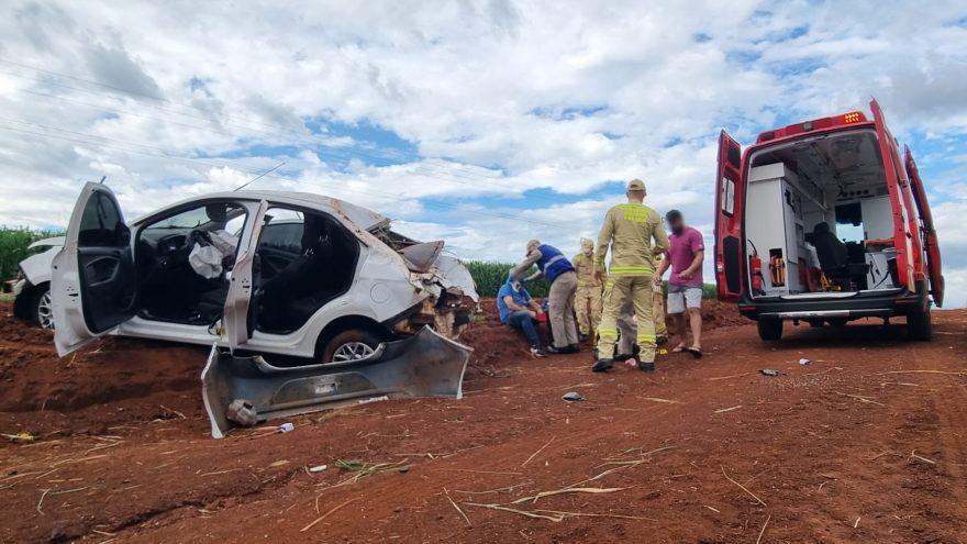 De acordo com informações, o motorista de um Ford Ka seguia pela rodovia, quando em uma curva perto da região do Bairro Lago Azul, perdeu o controle da direção e capotou o carro. O veículo saiu da pista e parou em uma área de vegetação às margens da BR, bastante destruído.