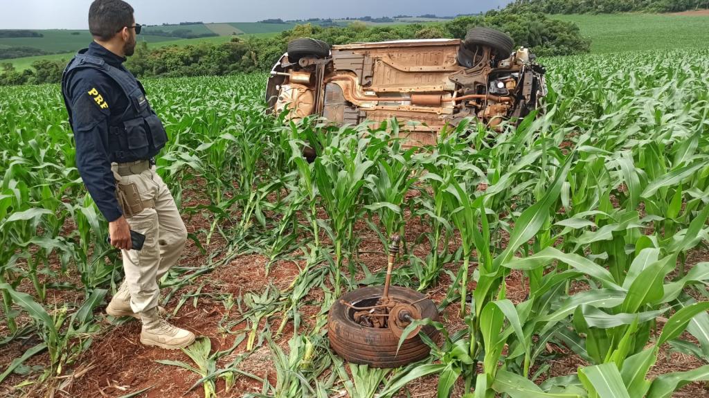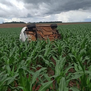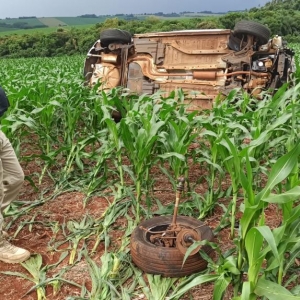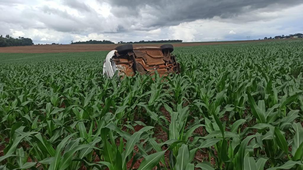O veículo trafegava no sentido a Toledo e o motorista perdeu o controle de direção saindo da pista capotando várias vezes parando dentro de uma lavoura de milho na posição de lado.