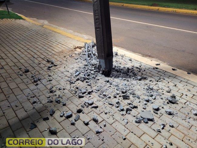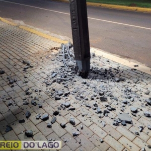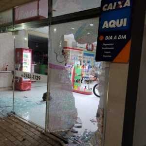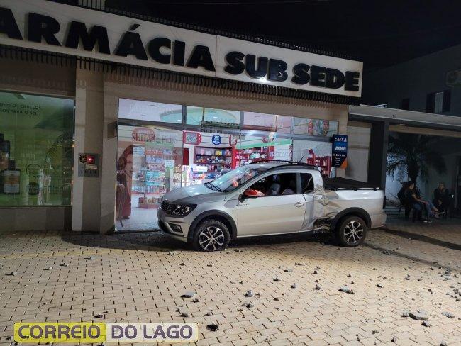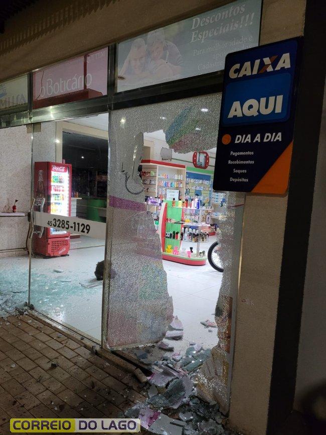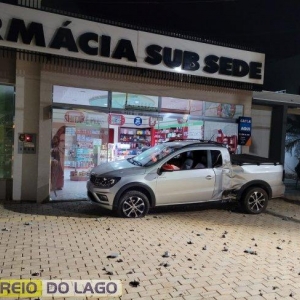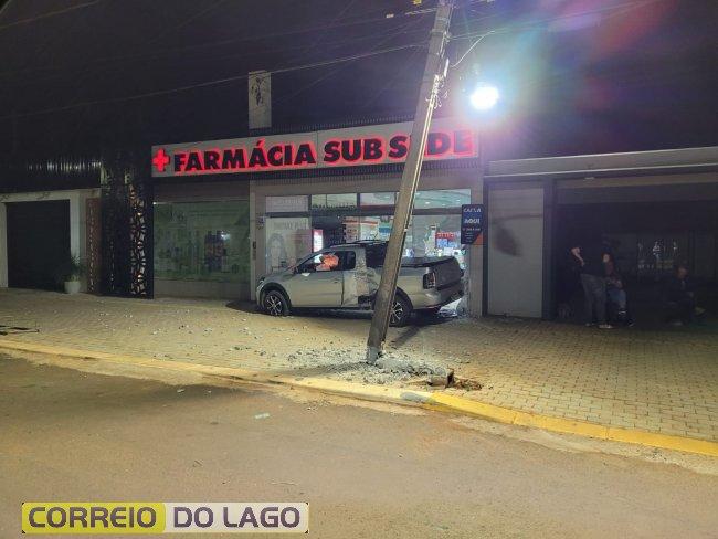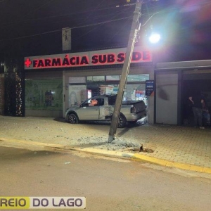 O condutor transitava pela avenida, sentido Santa Helena, quando perdeu o controle do veículo, colidindo em um poste e na sequência batendo na porta de vidro de uma farmácia.