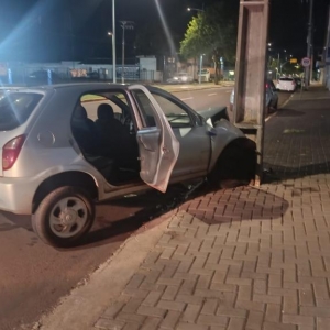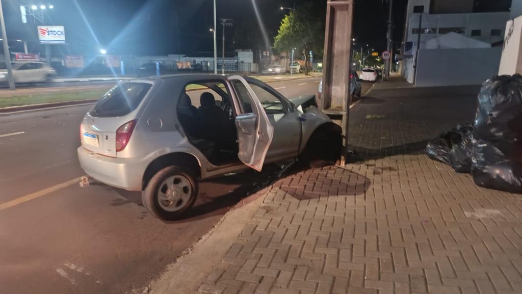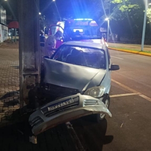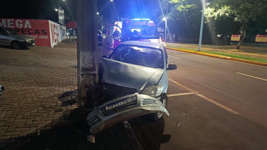 Uma colisão contra um poste mobilizou equipes de atendimento na noite deste sábado (06) na Avenida José João Muraro, região do Jardim Porto Alegre, em Toledo. O acidente envolveu um Chevrolet Celta com placas do Mercosul.