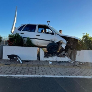 Segundo as informações, o condutor de um veículo VW Gol, seguia pela avenida em direção à praia, quando ao chegar na rotatória da praça, acabou seguindo reto, colidindo o veículo violentamente contra placas de sinalização e canteiro de flores.