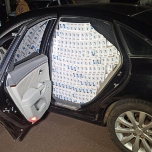 Após ele ser identificado, os policiais verificaram o veículo e nele foram encontradas cerca de 25 caixas de cigarros, dois rádios comunicadores e R$ 100.